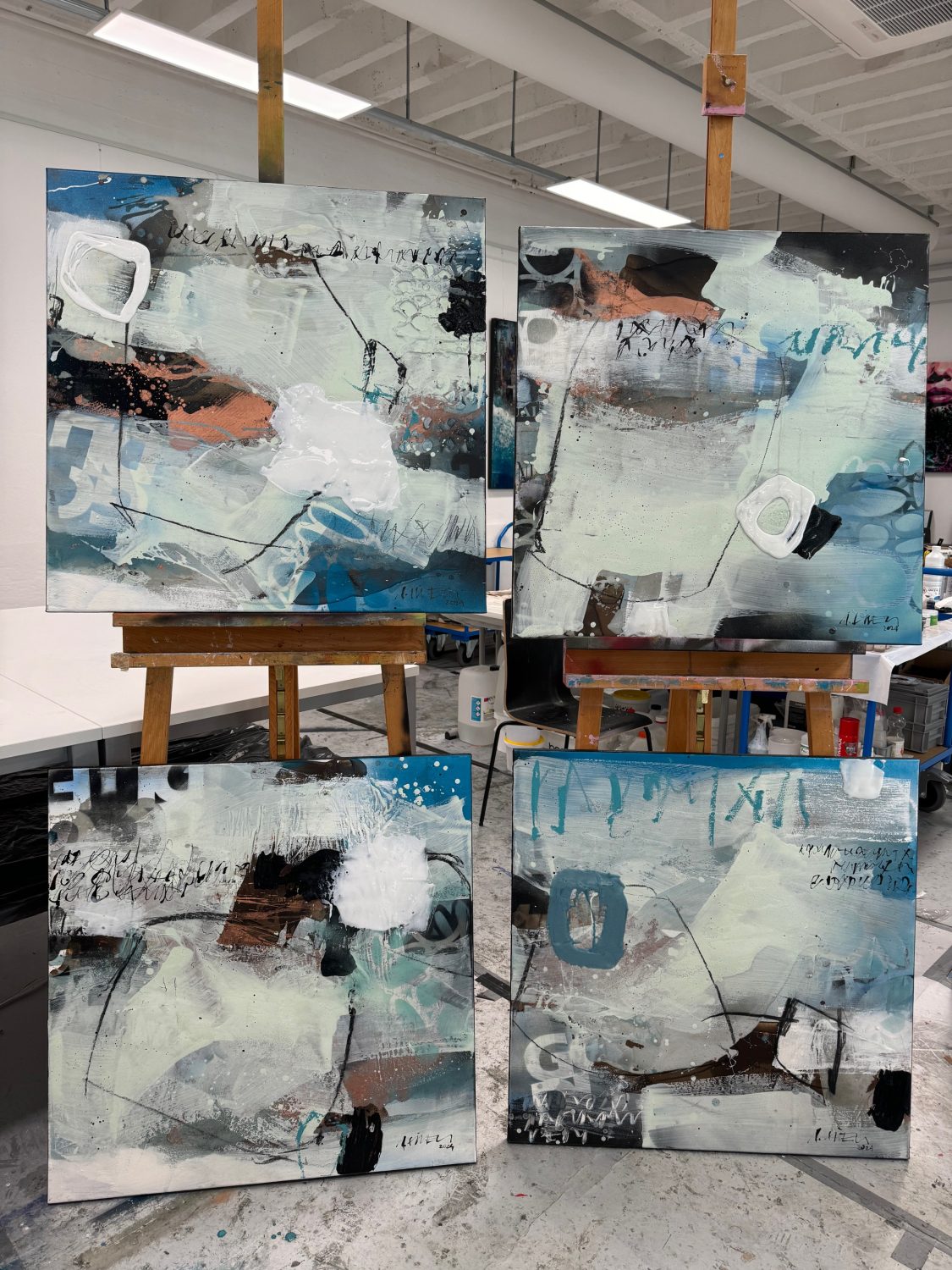 Collage, Schüttungen, Bitumen, Arbeiten mit unterschiedlichen Strukturen, Enkaustikwachs und Resin (optional).